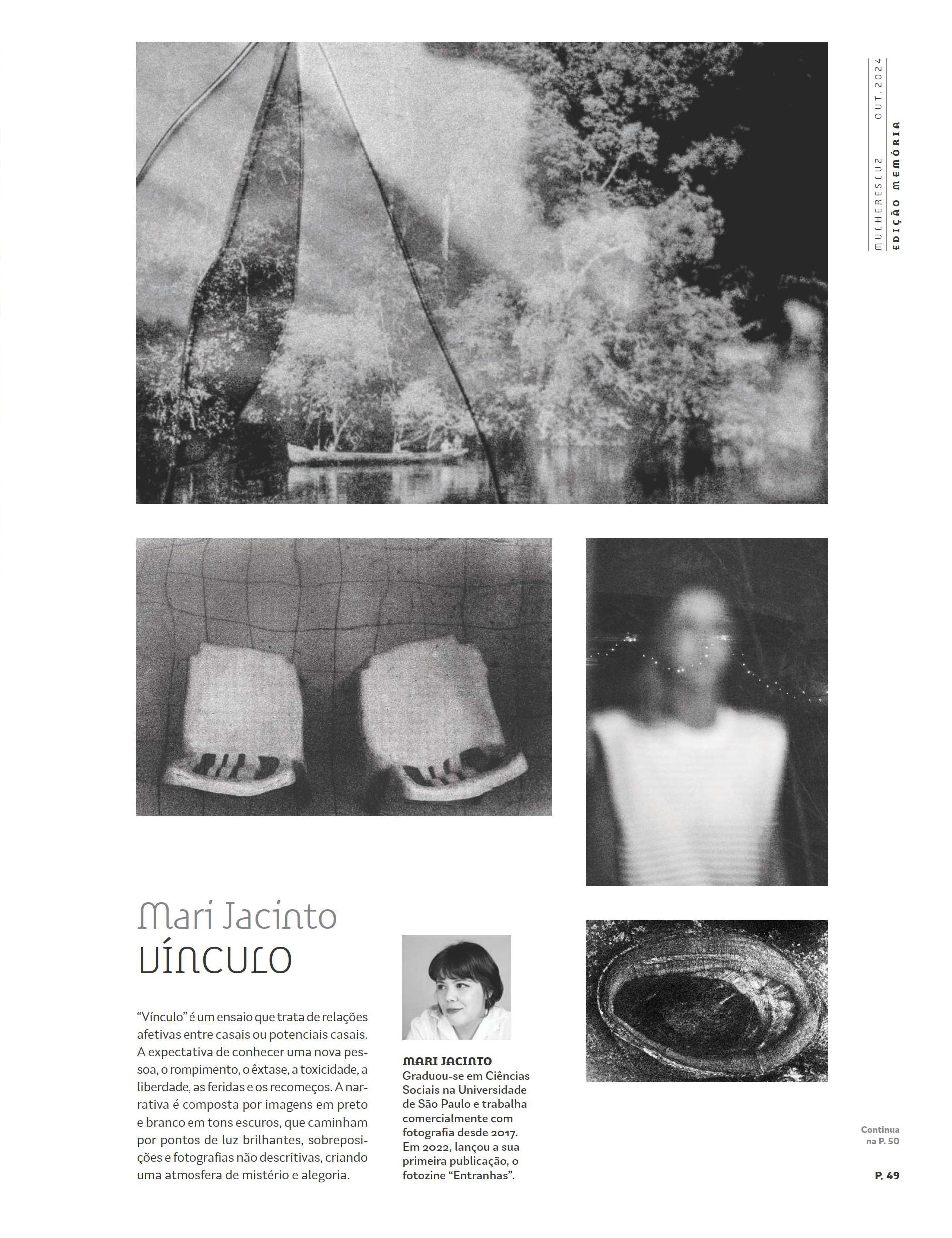 Ensaio Fotográfico ''Vínculo'' selecionado na convocatória de apresentação de projetos do Festival Mulheres Luz, idealizado por Mônica Maia, em 2024. O trabalho foi integrado na Revista Mulheres Luz, edição memória, em outubro de 2024.